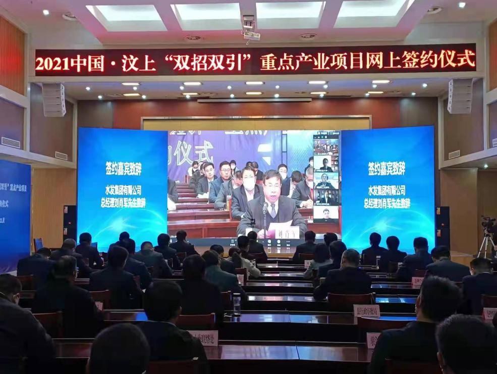 11月26日,水發(fā)集團黨委副書記、總經(jīng)理劉肖軍帶隊到汶上縣參加“2021中國·汶上‘雙招雙引’重點產(chǎn)業(yè)項目網(wǎng)上簽約儀式”,代表水發(fā)集團與汶上縣人民政府簽訂框架協(xié)議并作為嘉賓致辭。汶上縣委副書記、縣長李洪文出席活動并致辭。