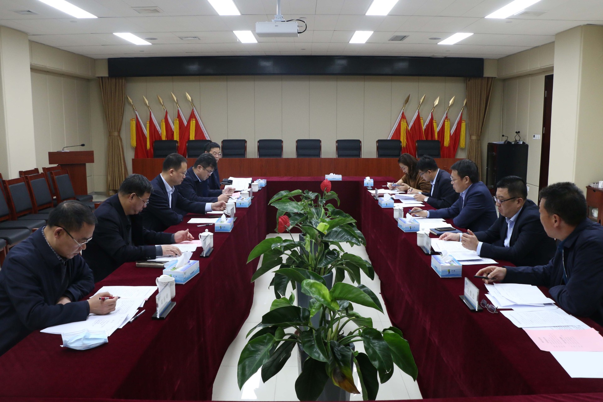 昌樂縣財政局黨組書記、局長秦維勝,縣住房和城鄉建設局黨組書記、局長李永金,水發生態產業集團常務副總經理王國防,副總經理于明,昌樂藍寶石水務公司董事長王俊忠參加本次會議(馬云飛 供稿)