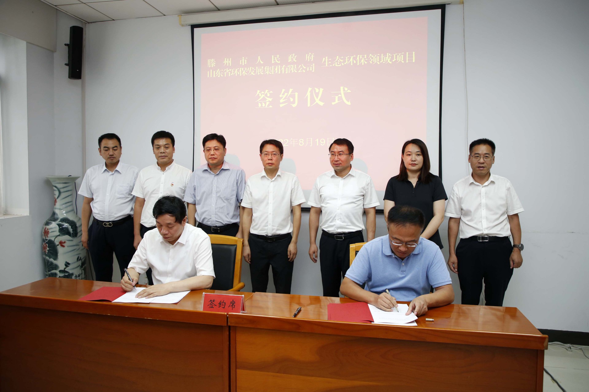 8月19日,山東省環保發展集團有限公司(以下簡稱“省環保集團”)與滕州市人民政府在滕州簽署“戰略合作協議”。滕州市委副書記、市長周剛,滕州市經濟技術開發區副主任、東沙河鎮黨委書記馬金安,省環保集團黨委副書記、副總經理曾繁領,省環保集團黨委委員、副總經理,水發生態產業集團有限公司黨委書記、董事長公培山等出席本次簽約。