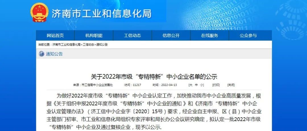 近日,濟(jì)南市工業(yè)和信息化局2022年市級“專精特新”中小企業(yè)公示期結(jié)束,水發(fā)(山東)檢驗(yàn)檢測研究院有限公司成功入選2022年市級“專精特新”中小企業(yè)。這是繼獲得國家級高新技術(shù)企業(yè)認(rèn)證后,公司獲得的又一重要權(quán)威認(rèn)證。